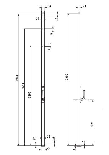 gâche basse en inox, visserie). - Hauteur 2300 et 3 000 mm : poignée à