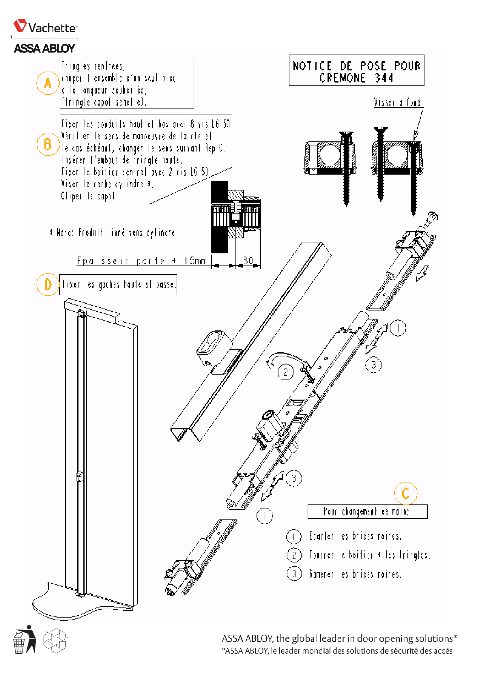 Découvrez la Crémone pour baie vitrée Vachette 344, une solution innovante conçue pour une installation instantanée sur votre porte sans nécessiter le montage fastidieux de tringles.