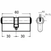 - Cylindre nickelé 30X30 double entrée PETIT panneton 11.3mm ( voir photo )