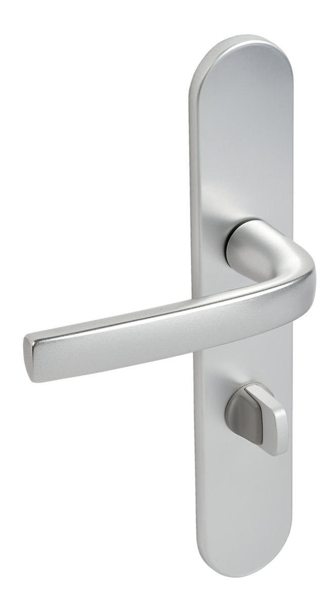 Cet ensemble se compose d’une poignée à béquille avec carré de condamnation et d’une poignée simple avec trou en O, tous deux en finition blanc.