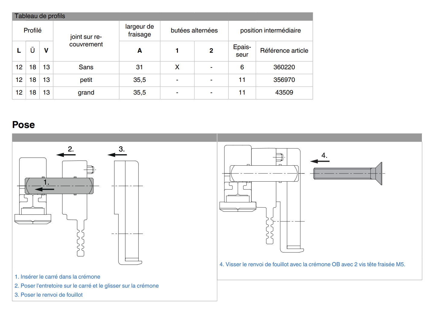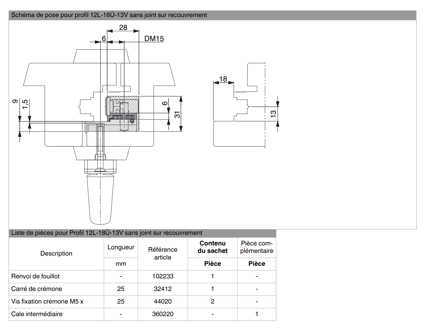 Compatibilité : fenêtres bois équipées de crémone MACO compatibles avec ces mesures