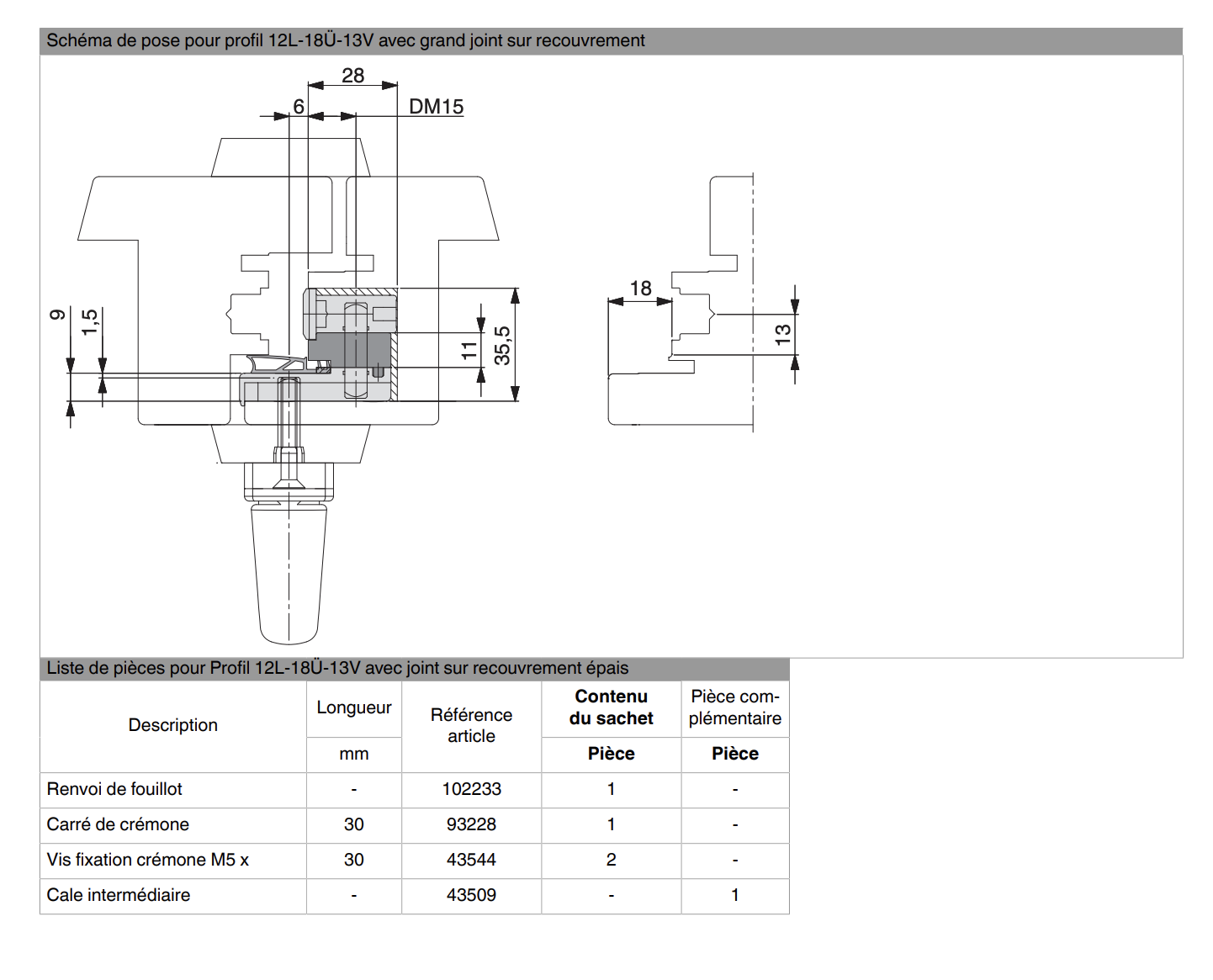 Recouvrement (Ü) : 18 mm