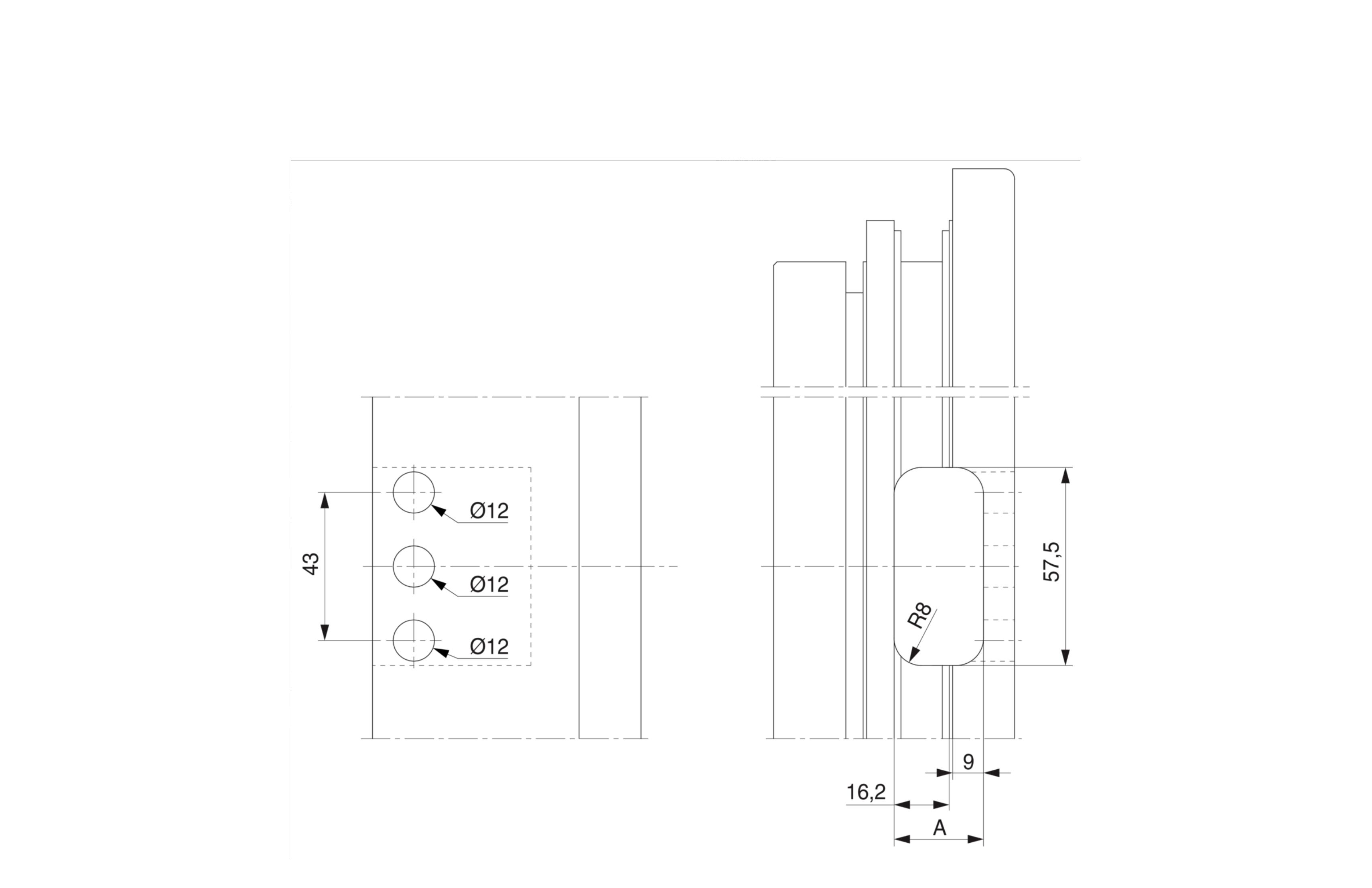 Entraxe des fixations : ≈ 43 mm (comme sur référence 57249)