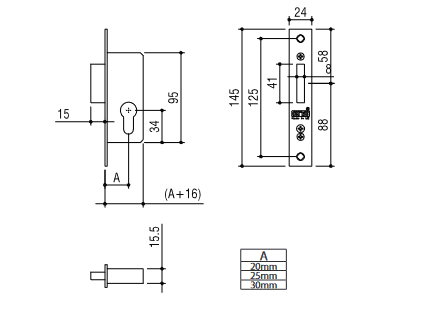 - Axe de la serrure : 30 mm