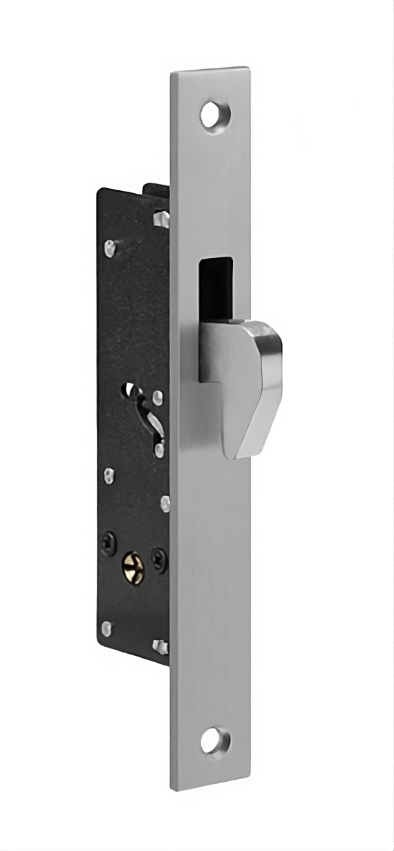 Serrure à crochet Levi 743CG pour porte coulissante métallique, modèle encastrable en acier
