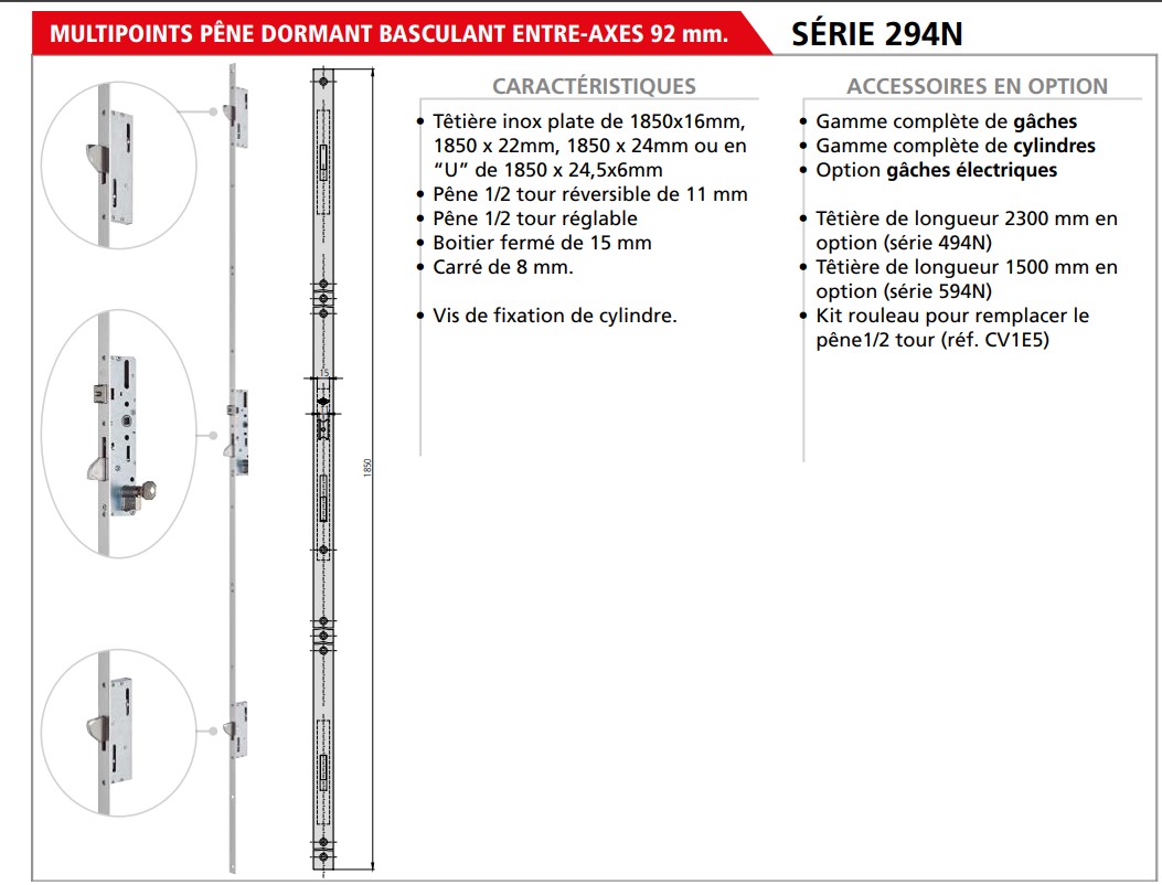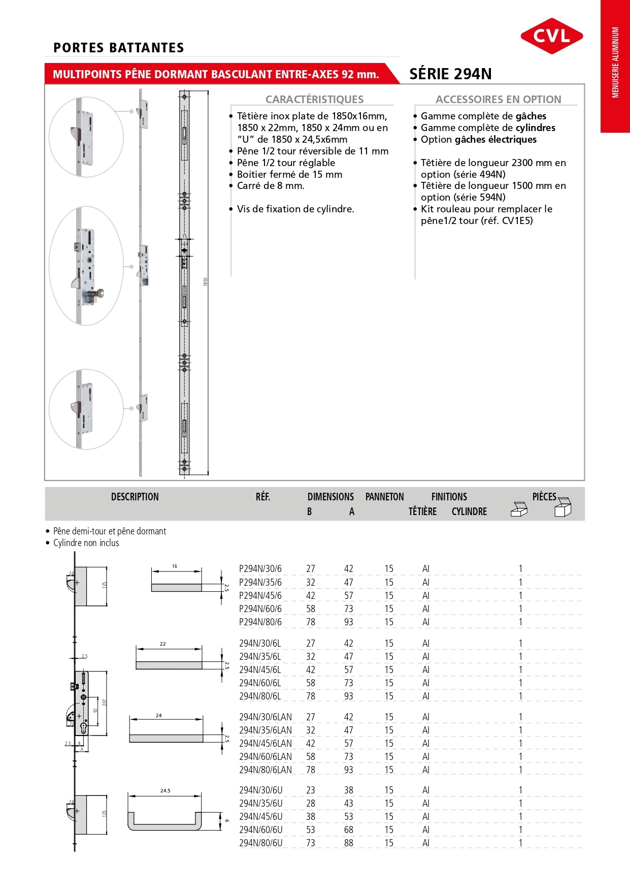 Vous regardez : Serrure CVL multipoints pêne basculant série 294N entraxe 92 mm 298,00 TTC