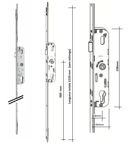 Crémone à relevage adaptable GU Ferco 5.28/70 G-24402 – Partie haute – Cote D 980 mm