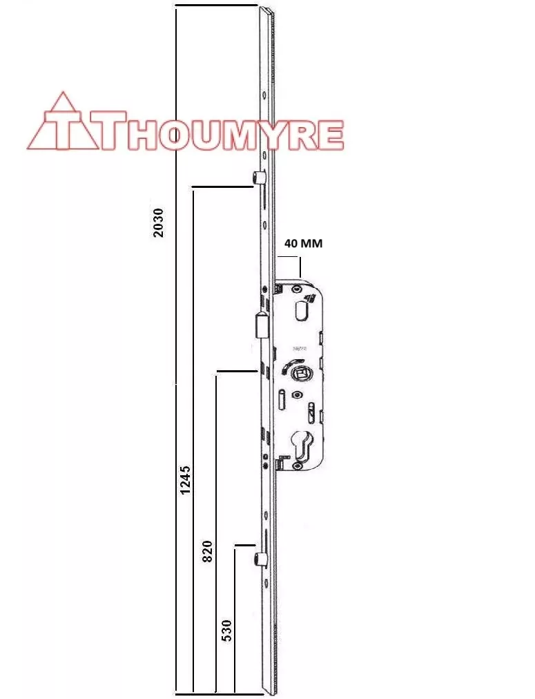 – AXE : 40 mm (bord de la serrure à l’entrée de clé, milieu du cylindre)