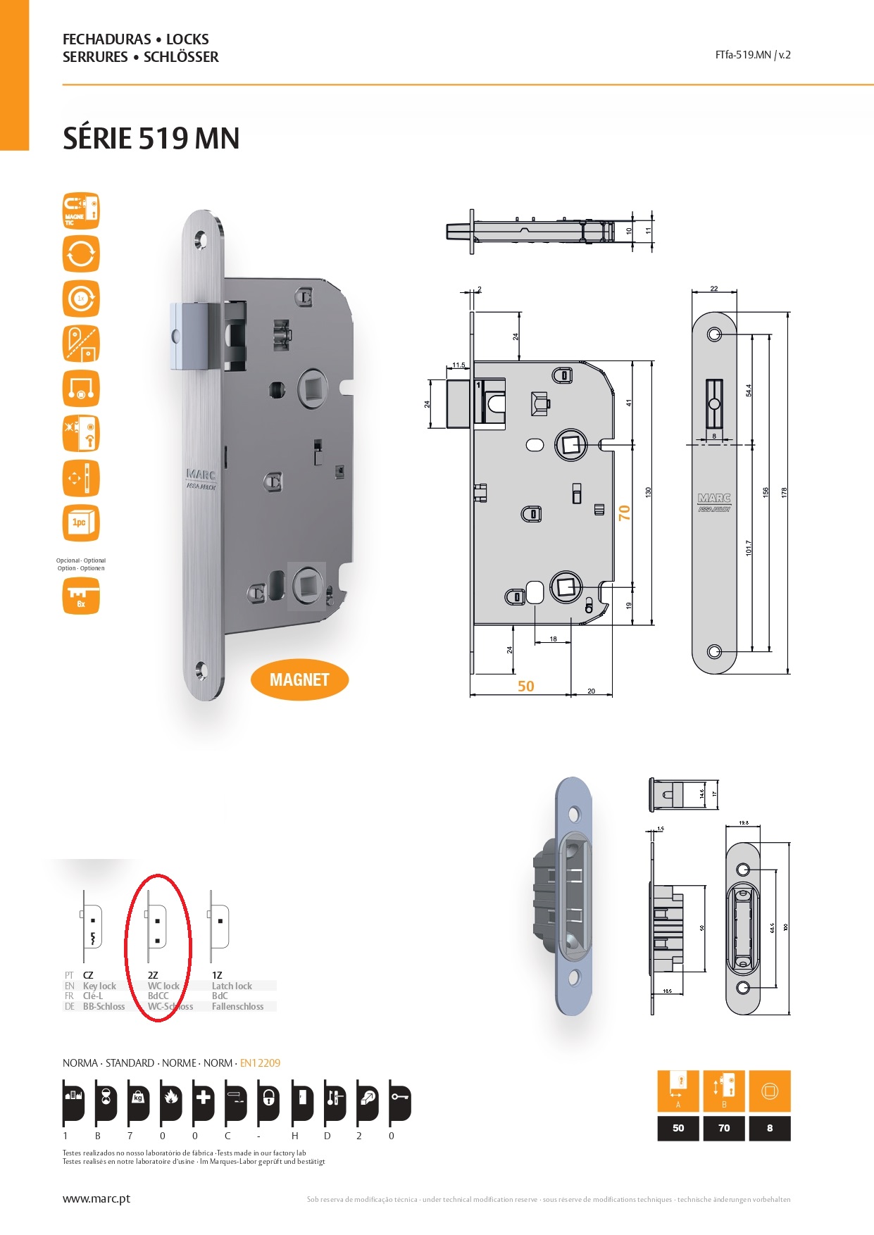 Trous de rosaces horizontal avec blocage u pêne 1/2 tour, carton d’une pièce et gâche réglable comprise.